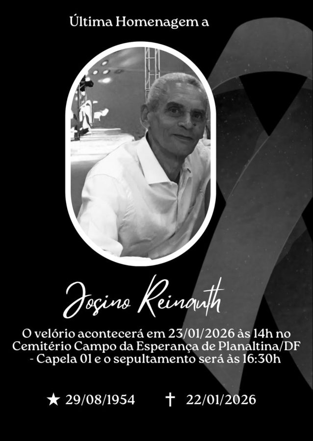 Informamos que o velório e sepultamento, será hoje 23/01/2026-(14h às 16h30), no Cemitério Campo da Esperança em Planaltina/DF.